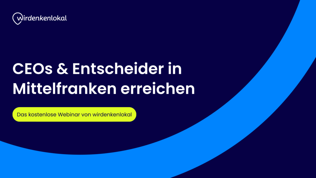 Sie erreichen viele – aber nicht die richtigen? Genau dieses Problem greift das kostenlose Webinar „CEOs & Entscheider in Mittelfranken erreichen“ von wirdenkenlokal auf. Am 12. Mai (10:00–11:00 Uhr) und 13. Mai 2026 (10:00 – 11:00 Uhr) erfahren Unternehmen aus der Metropolregion Nürnberg, wie sie gezielt Geschäftsführer, Inhaber und Vorstände ansprechen.
